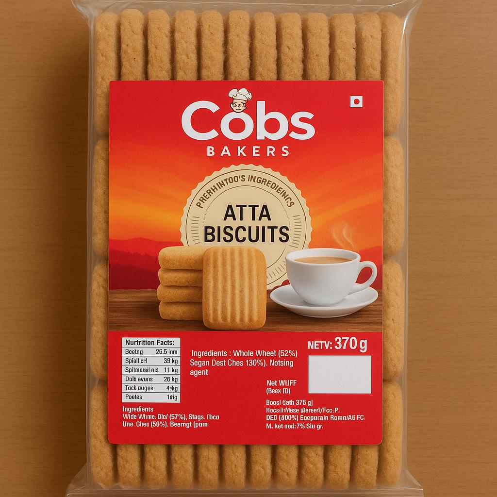 Enjoy the wholesome goodness of Cobs Bakers Atta Biscuits, These delicious biscuits are crafted with 52% whole wheat, making them a perfect accompaniment to your tea or a healthy snack option.