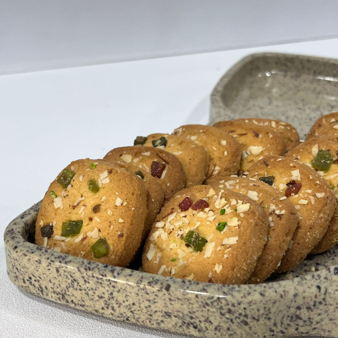 Colorful, crunchy, and full of joy — these biscuits mix sweet tutti frutti with the crunch of peanuts for a fun, flavorful bite. Great for festive moods and cheerful snacking.